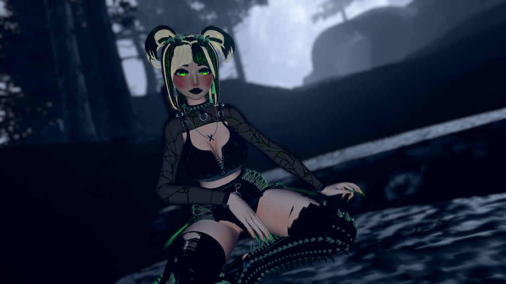Body by (Ragga#3124) (heavily edited by me), Head by (Sugs#9795) (Edited by me), Hovl AAA magic circles particle, Thigh high boots by (Gashina#1960) spikes added by me, Horns and tail made by (Illume#2788), spicy tongue by (ahr*), Halloween Icons (B o o#8584), Locomotion AlcTrap, WetCat, Gireison, Dj Lukis.LT, Icons by awmi#6003, World Constraint by VrLabs