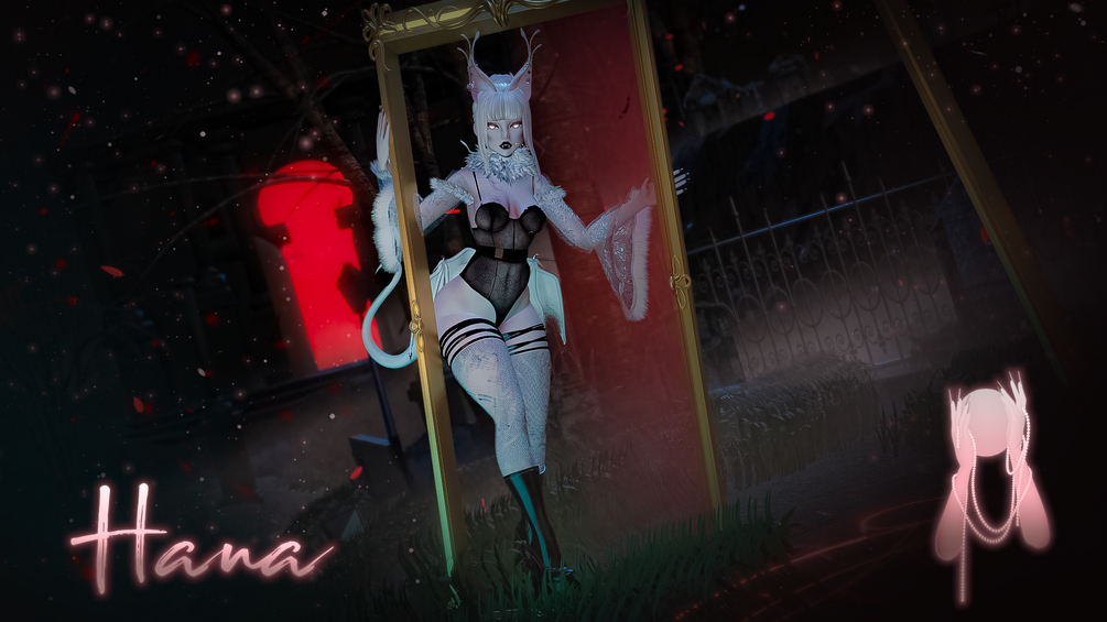 - Entire outfit made from scratch by me Ressonae; Hair, hybrid bat ears, heart shades, neck fluff with frills, tongue, off shoulder robe, spider bodysuit, bat wings, tail, leg straps, platform boots and including ALL accessories; piercings, jewelry etc. Every item is personalized and textured by ME through substance painter! NONE of these are for redistribution in any way. Please do not take these assets or any of the credited assets above that I have edited..